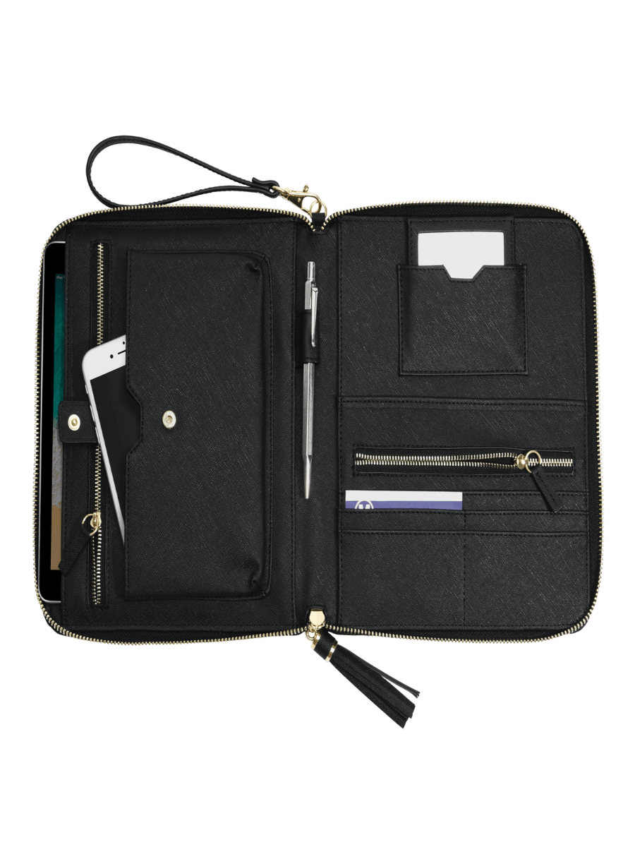 Our tech organizer is ideal for business & pleasure. It is specially designed to ensure that you have enough space for all your documents and devices. This bag has several internal compartments for your notebook, iPad and mobile phone, but also a pen holder, zip pocket and pockets for your business cards.